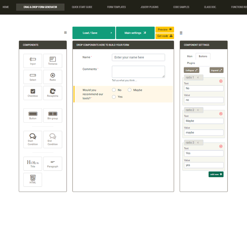 Create and configure your PHP forms by simple drag and drop.